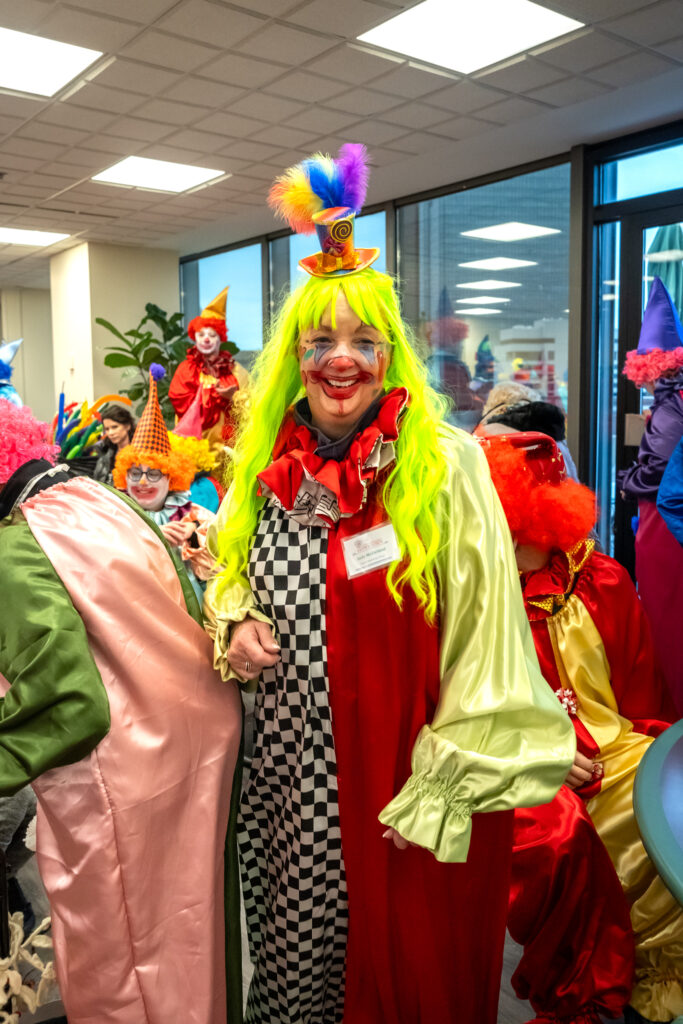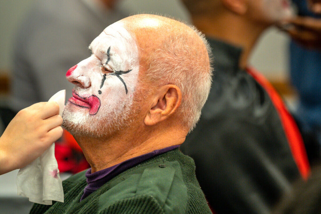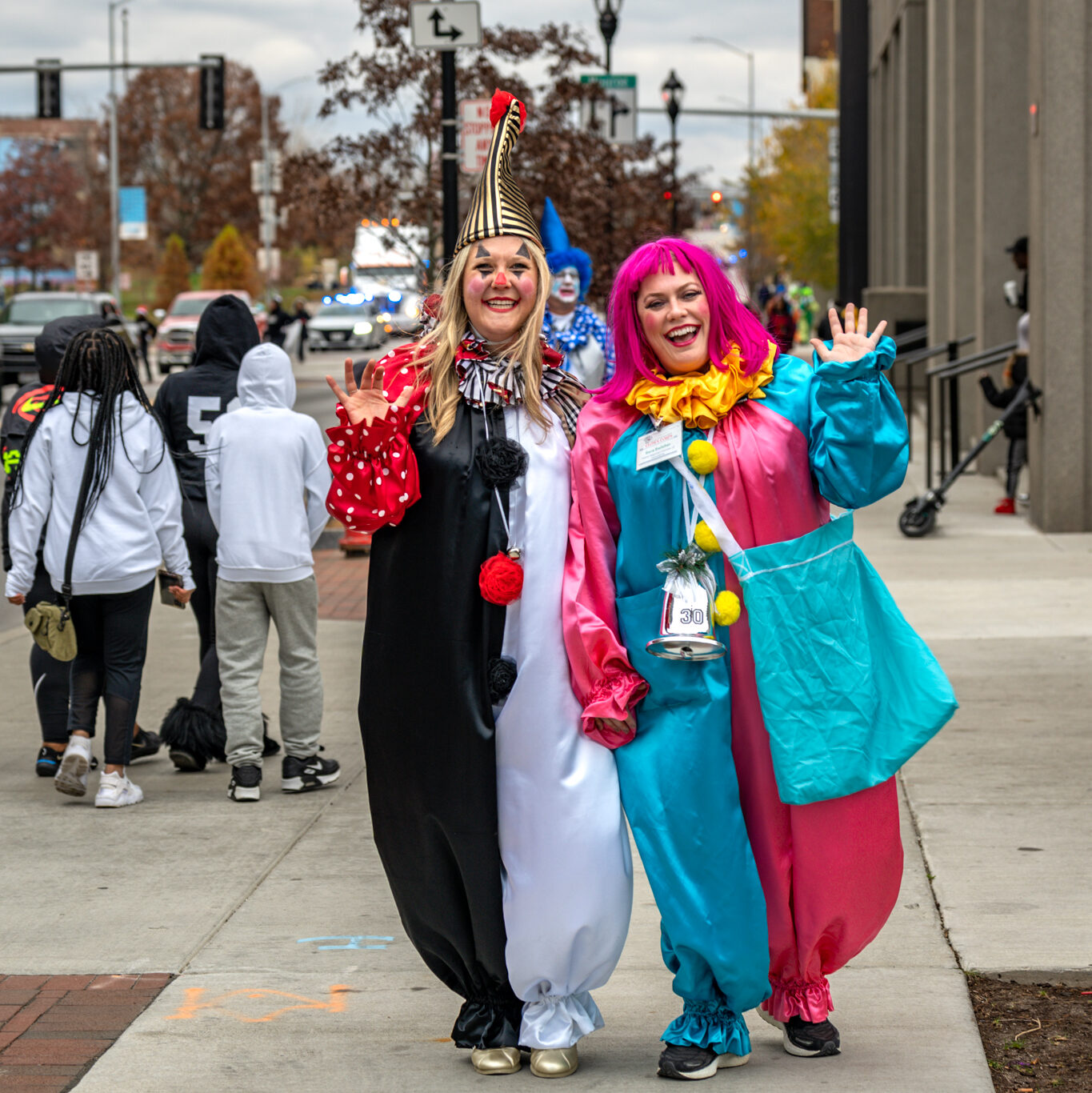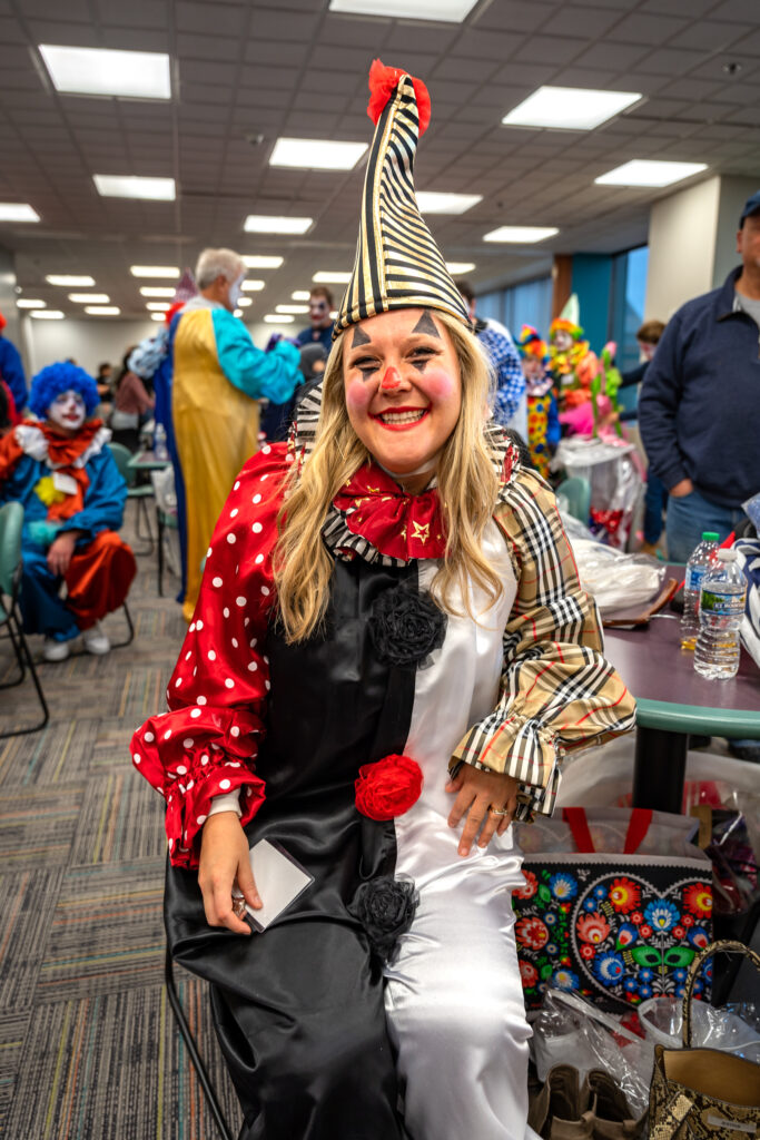 Becoming a member of the Distinguished Clown Corps (DCC) is easy — and unforgettable! Each new clown receives a custom-made suit in the color of their choice, complete with wigs and professional make-up applied on parade day by talented students from the Toledo School for the Arts.