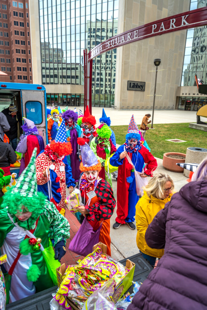 Before stepping off in the Blade Annual Holiday Parade, all clowns are invited to “Balloon School” to learn how to twist colorful balloon animals — a crowd favorite that children often love even more than candy. After the parade, clowns have the chance to continue spreading cheer by visiting Imagination Station or local non-profits to hand out candy, balloons, and gifts.